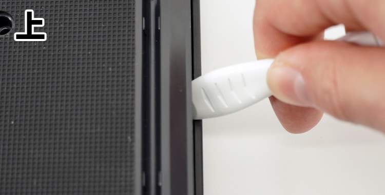 5. 付属の「本体開封用工具」を隙間に差し込み軽く回します。
