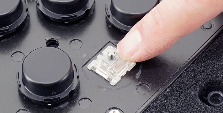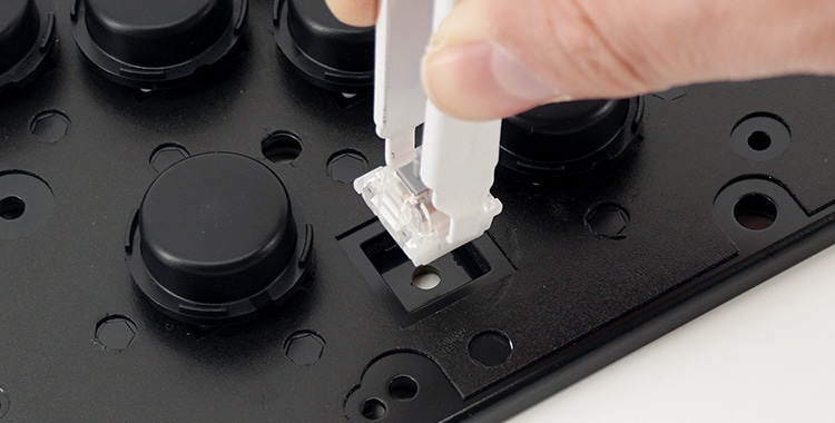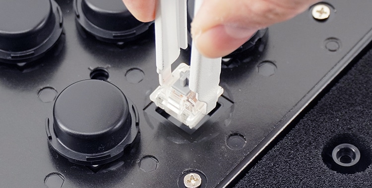3. 付属のキースイッチプラーで、キースイッチの上下のツメを押さえながら真上に持ち上げます。