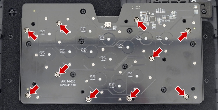 1. プラスドライバーで全てのネジ(10箇所)を外し、天面から基板を取り外します。